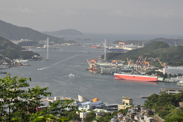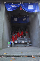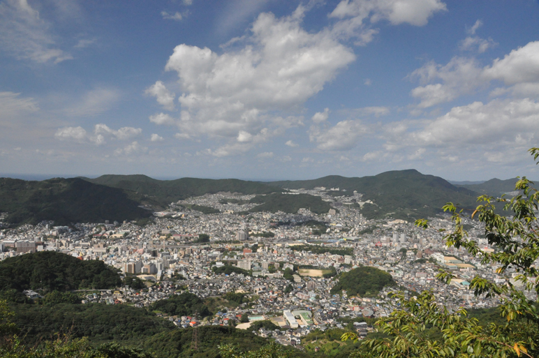 One of my big goals last trip was to hike up Mt. Konpirasan, one of the hills surrounding Nagasaki Harbor. It looked easy enough, especially with the retreat center already part way up one side. There was plenty to see last time and I didn't get to it, which was a good thing. I wasn't in any way ready for it: more physically demanding than I thought and a few opportunities to get lost or fall into a cave. Among my preparations for Japan this time was the purchase of a new GPS and local topo maps. The satellite images of Nagasaki on Google Earth were updated since last year and I was able to scope out many of the sights you see here ahead of time. I was able to select waypoints and a basic trail in advance and plug them into the GPS. It was still possible to get disoriented, but I didn't deviate much from the route I had set up. There were some unusual critters like an iridescent blue lizard and the spider I've seen all over Japan, Nephila Clavata. The spider is supposedly harmless, but imagine a 2-3" long body with the colors of the Maryland state flag. The ones on Konpirasan looked alert, well fed, and able to process a small bird. My skin crawled the rest of the day. Also in the beautiful and creepy column was the bamboo forest at the end of the hike. Bamboo is everyhwere in Japan and to me it's probably beautiful because of its novelty. In the woods it tends to be invasive. It grows tight and its leaves create a think slippery carpet on the ground, so it can be a challenge to traverse. The weirdest thing about it is the sound it makes when trunks bump against each other. Imagine a chorus of drumming on five-gallon buckets. The first time I heard it the forest was initially still, and then a gust of wind set it all in motion. I wasn't back to a normal level of calm until I got back to a street. |